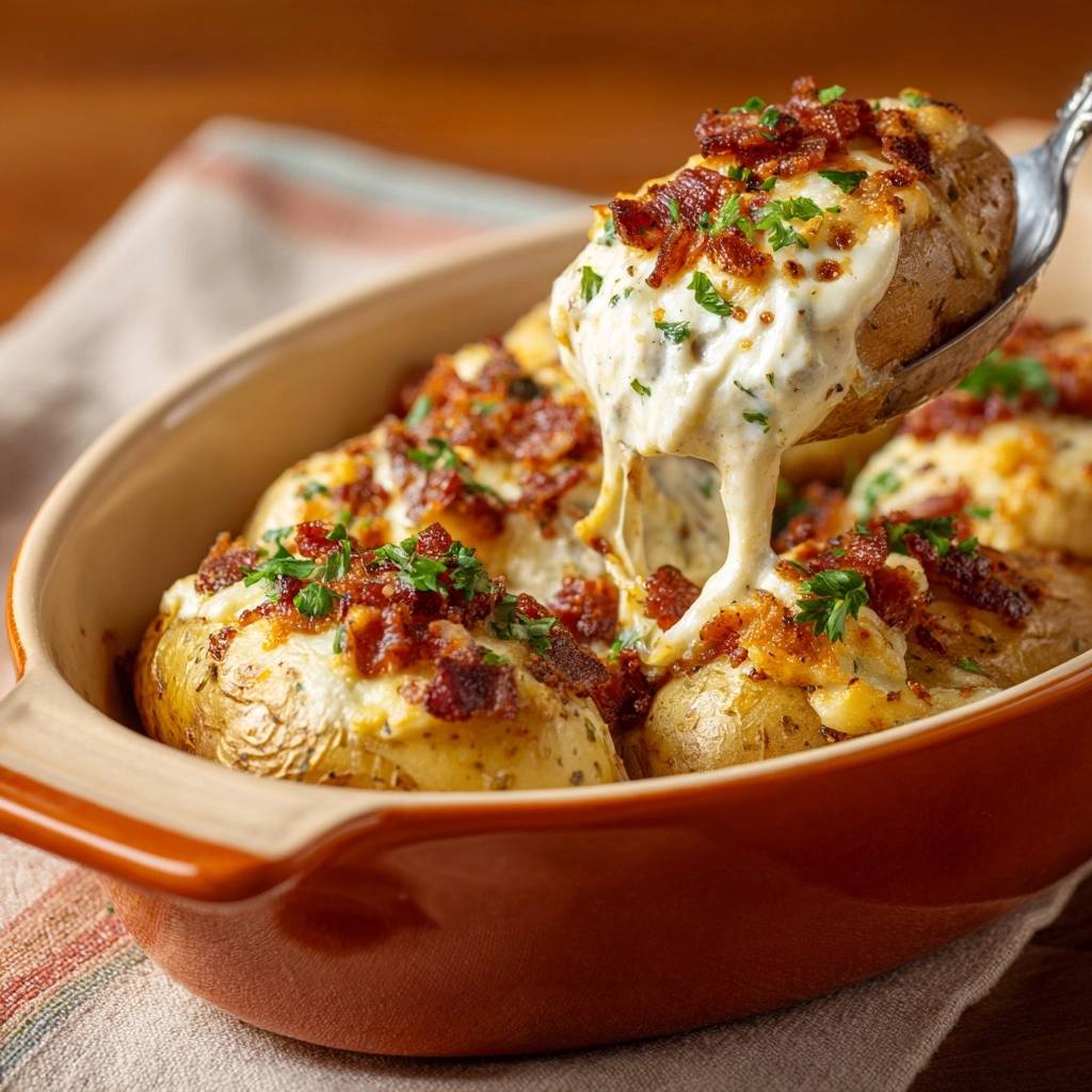 Der Biss in die goldbraune Haut knackt so herrlich, dass du sofort lächeln musst. Drinnen wartet fluffiges Kartoffelfleisch, umhüllt von cremigem Schmand, der mit frischer Petersilie duftet. Obenauf schmilzt der Käse zu Fäden, und knuspriger Bacon gibt den perfekten Crunch. Das ist pure Wohlfühlfood, die du dir nach einem langen Tag gönnst.