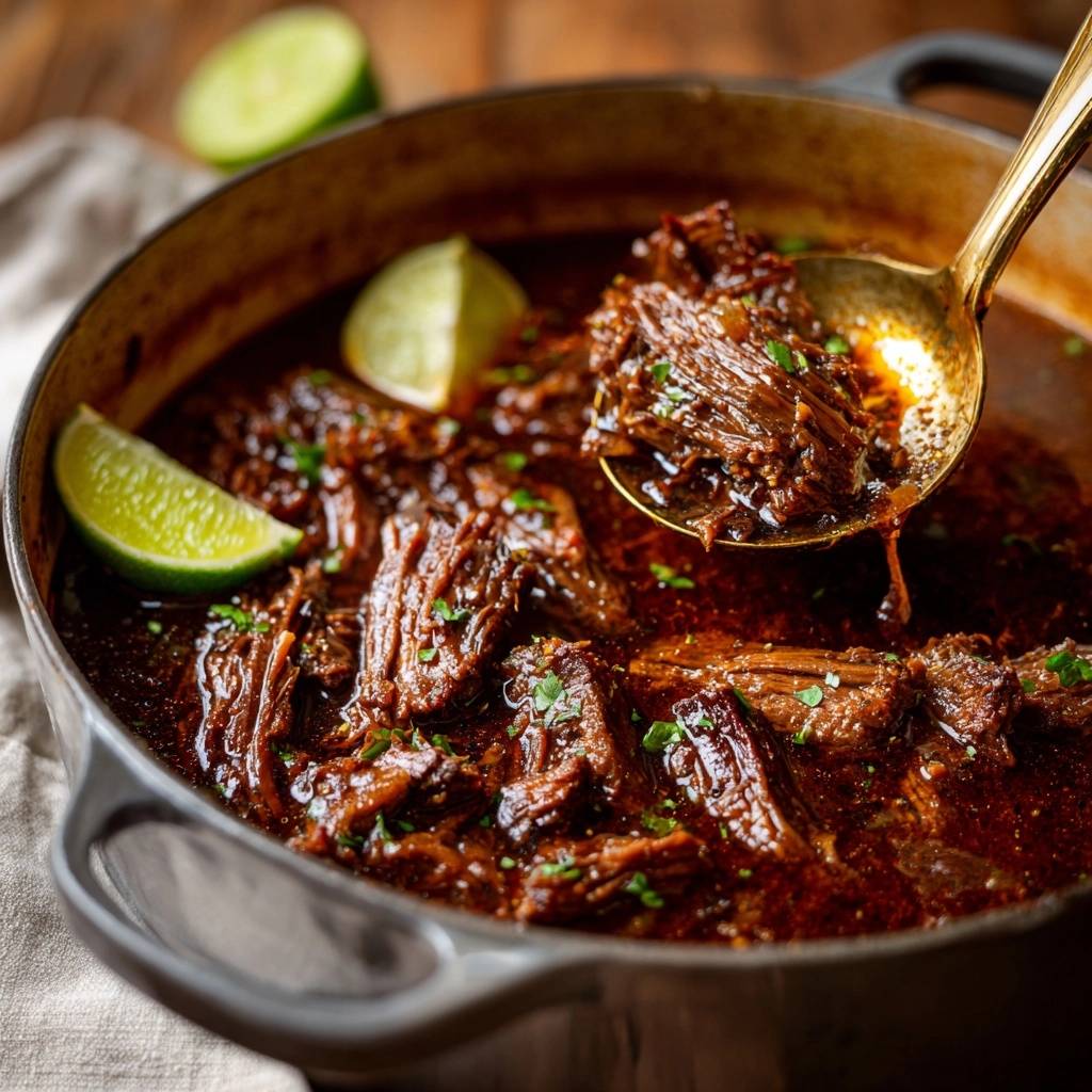 Stell dir vor, du beißt in shredderbares Rindfleisch, das sich auf der Zunge auflöst. Die Soße tropft würzig von Limette und Gewürzen, und du fragst dich, warum du das nicht früher gemacht hast. Ich kenn das zu gut: Früher hab ich Schulterstücke stundenlang geschmort, und am Ende kaute ich Gummi. Stunden im Topf, und nichts als Frust.