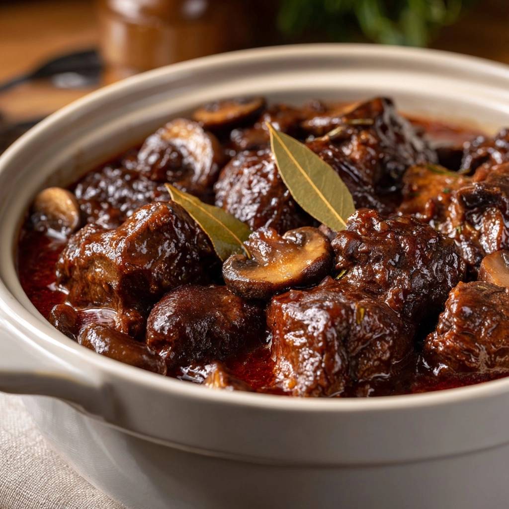 Stell dir vor, du löffelst das erste Mal aus diesem dampfenden Topf. Das Rindfleisch zerfällt butterzart auf der Zunge, die Champignons bringen erdigen Umami-Geschmack, und die Soße umhüllt alles mit sämiger Wärme. Du riechst den intensiven Duft von geröstetem Tomatenmark und Lorbeer, der die ganze Küche erfüllt.