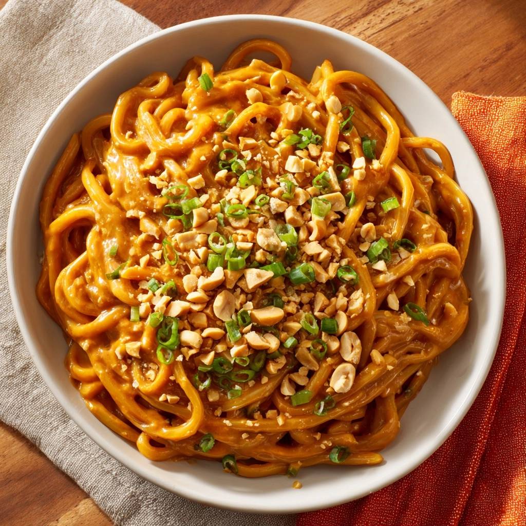 Stell dir vor, du beißt in diese Nudeln rein. Die cremige Erdnuss-Sauce umhüllt jede einzelne, seidig und glatt, mit einem Hauch von Limette und Ingwer, der auf der Zunge explodiert. Knackige Erdnüsse oben drauf, Frühlingszwiebeln für Frische – purer Genuss in jedem Bissen.