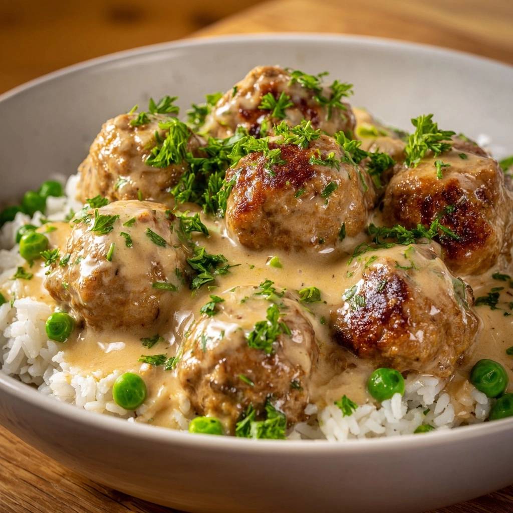 Cremige Fleischbällchen mit Erbsenreis – Nie wieder zerfallen!