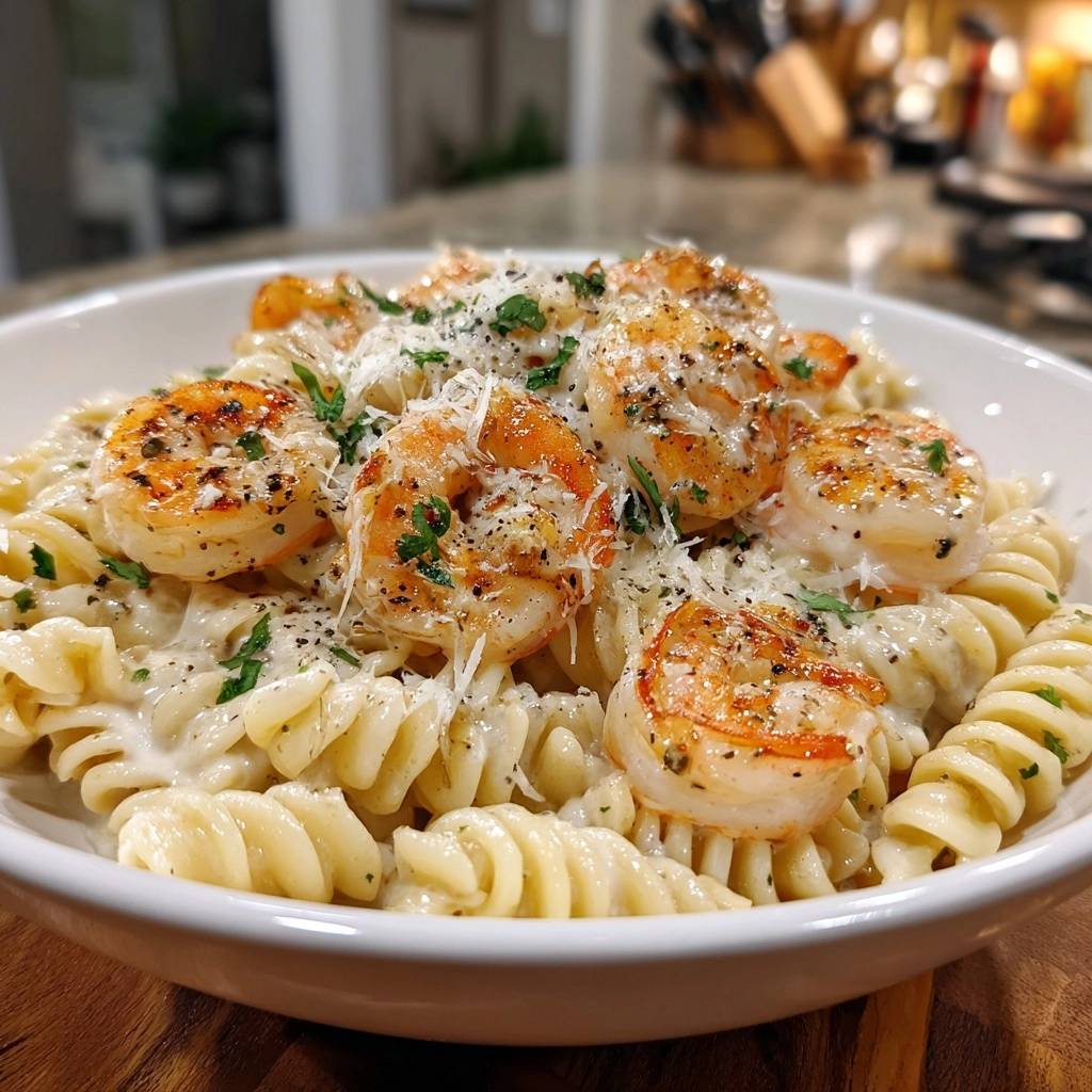 Stell dir vor, du beißt in die erste Gabel cremiger Fusilli mit Garnelen und Parmesan. Die Pasta umhüllt eine saftige Garnele, die Sauce schmilzt auf der Zunge, und der frische Parmesan kickt mit Nussigkeit nach. Der Duft von gebratenem Olivenöl und Petersilie hängt in der Küche, und du fragst dich, warum du das nicht öfter machst.