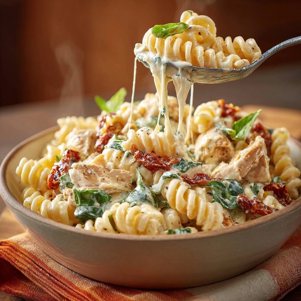 Stell dir vor, du beißt in diese cremigen Fusilli mit Hähnchen, Spinat und Tomaten. Der Käse schmilzt auf der Zunge, das Hähnchen ist saftig, und der Spinat bringt Frische rein. Ich hab das Gericht letztens für Freunde gemacht, und alle haben den Teller leer gelöffelt.