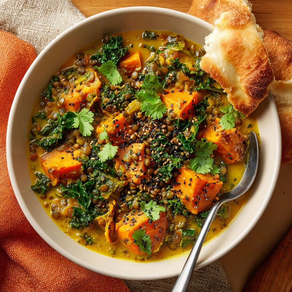 Dieses Gericht ist weit mehr als nur eine Mahlzeit; es ist eine Umarmung von innen, die Körper und Seele gleichermaßen nährt. Die Kombination aus cremiger Kokosmilch, erdigen Linsen und den süßlichen Akzenten der Süßkartoffeln ist einfach unwiderstehlich.