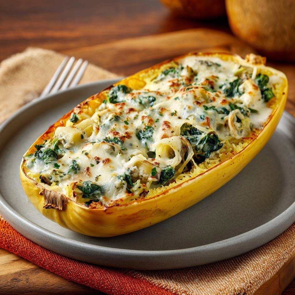 Cremiger Spinat-Artischocken-Spaghettikürbis – Rezept