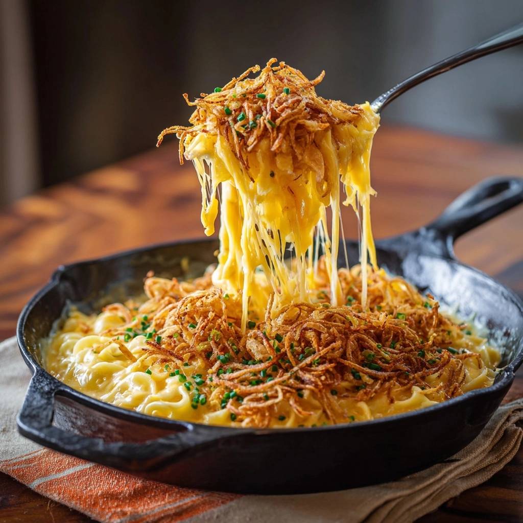 Cremiges Mac and Cheese mit knuspriger Zwiebelkruste