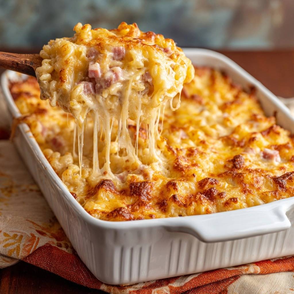 Stell dir vor, du schaufelst die Gabel in goldbraunes Mac and Cheese. Die Kruste bricht knackig ein, und innen quillt cremiger Käse mit zarten Schinkenwürfeln heraus. Das ist der Moment, wo du denkst: Endlich perfekt!