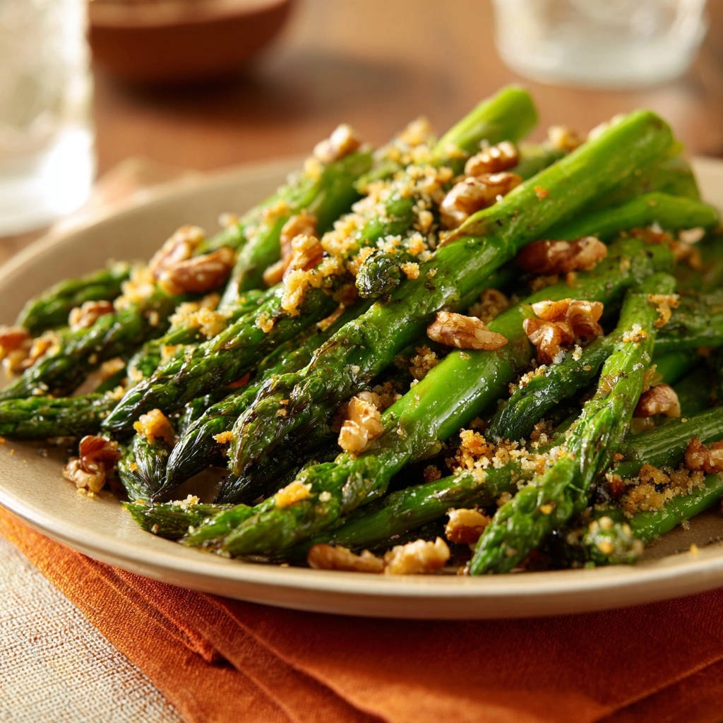 Gebratener grüner Spargel mit Walnuss-Kruste: Knackig, einfach, perfekt