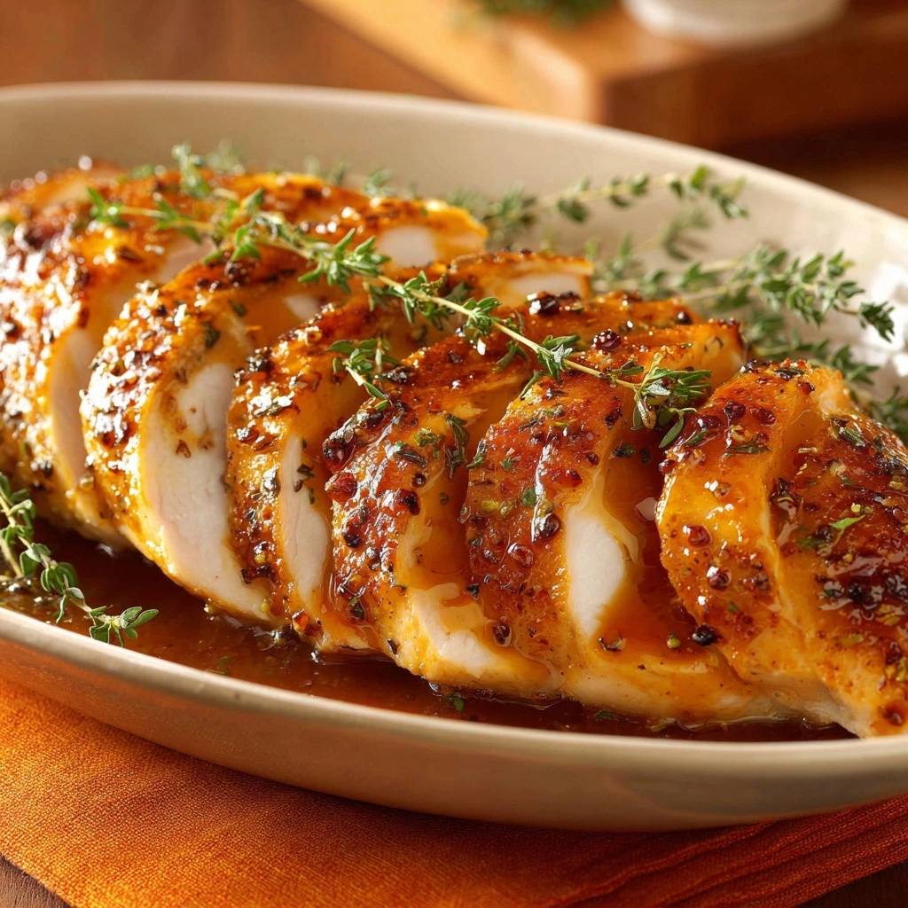 Ich hasse es, wenn Hähnchenbrust nach dem Garen wie Leder schmeckt. Zu heiß, zu schnell, und schon ist die Saftigkeit weg. Aber mit diesem Trick bei niedriger Hitze und der Glasur, die Feuchtigkeit spendet, wird’s anders. Du spürst die Aromen sofort: Thymian umhüllt den Honigduft, Senf gibt Biss.