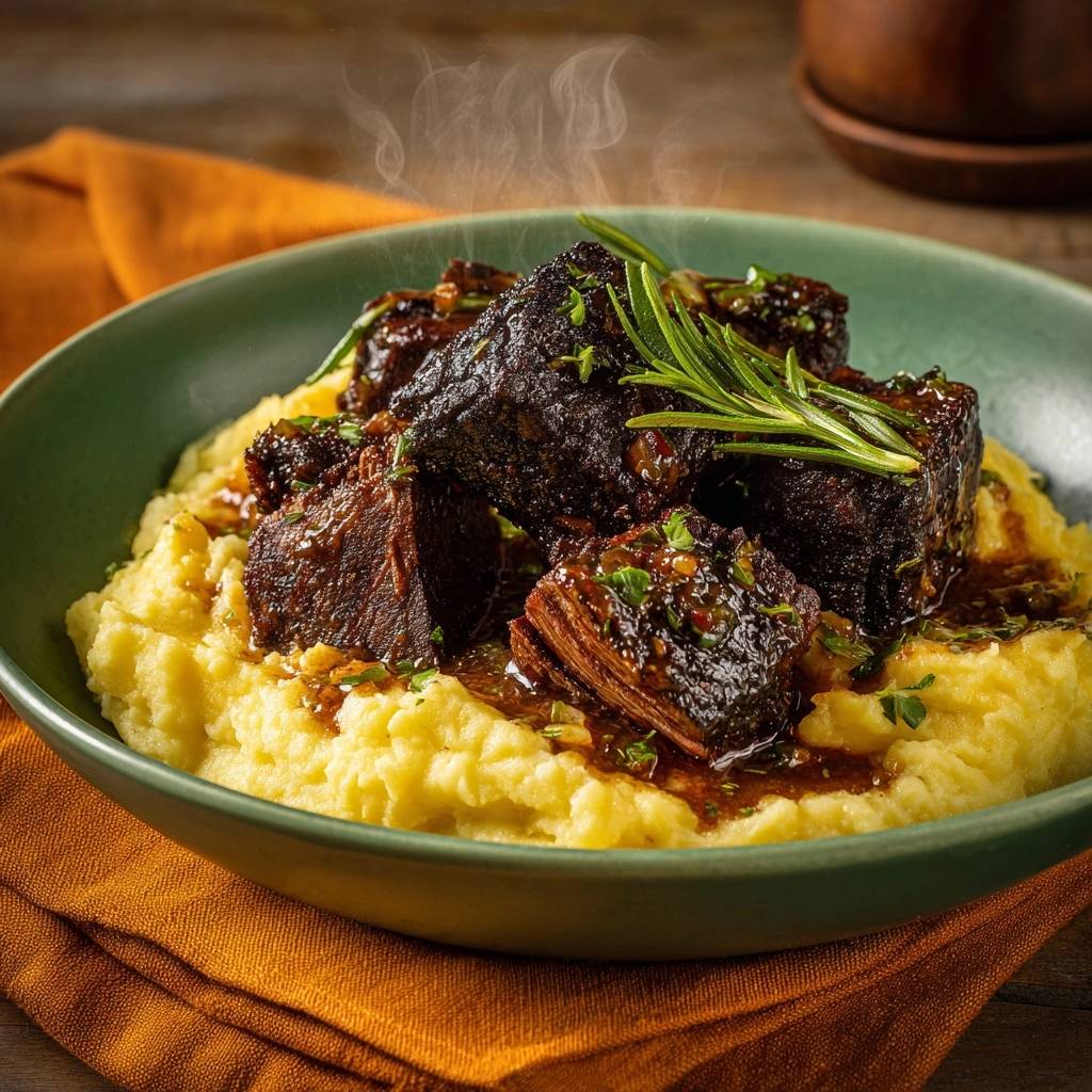 Stell dir vor, du schaufelst den ersten Löffel cremiges Kartoffelpüree in den Mund, und obendrauf schmilzt zartes Rindfleisch in einer glänzenden Sauce. Der Rosmarin duftet intensiv, das Fleisch zerfällt förmlich auf der Zunge. Das ist pure Wärme für kalte Abende.