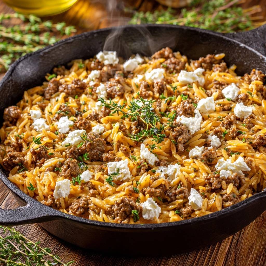 Griechisches Orzo mit Rinderhack und Feta (Nie wieder matschige Orzo!)