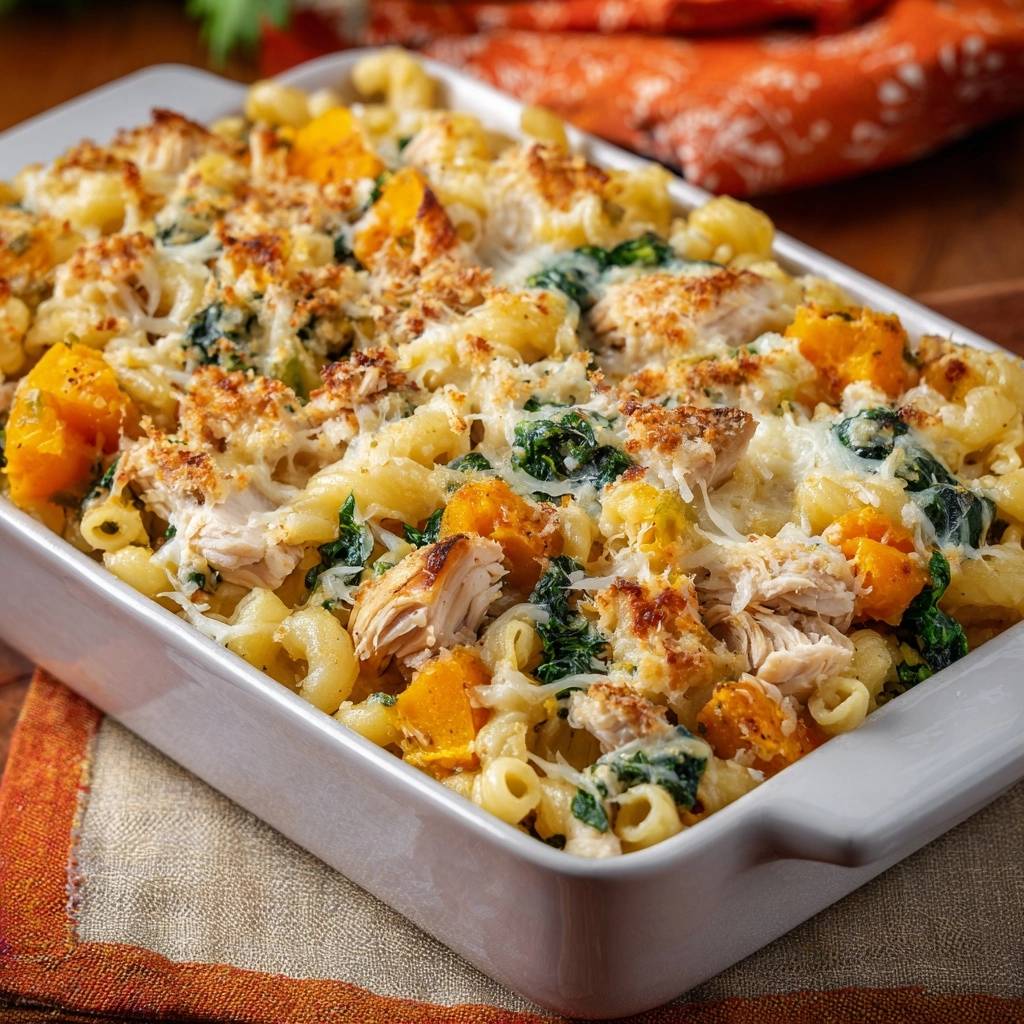 “`Herbstlicher Kürbis-Hähnchen-Mac-and-Cheese