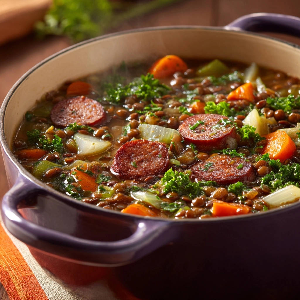 Herzhafter Linseneintopf mit Räucherwurst