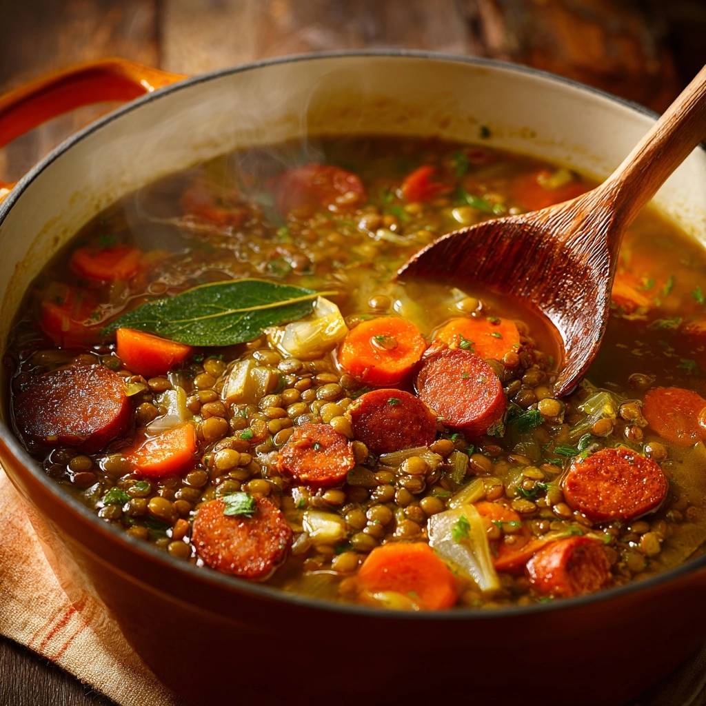 Warum dieser Linseneintopf mit Wursteinlage garantiert gelingt