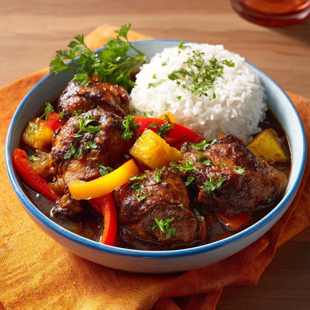 Stell dir vor, du beißt in ein Stück Fleisch, das so zart ist, dass es fast von selbst zerfällt, während eine süß-saure, tiefdunkle Sauce deine Geschmacksknospen wachkitzelt. Genau das passiert bei diesem Karibischen Ananas-Hähnchen.