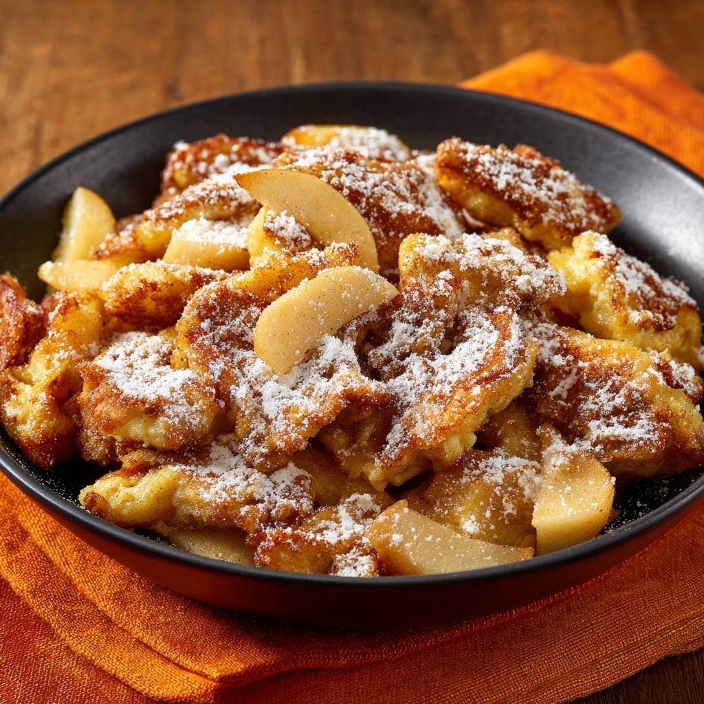 - Mit reichlich Puderzucker bestäuben und heiß servieren. Die Apfelstücke sind jetzt saftig-knackig, der Teig fluffig und knusprig – garantiert kein Matsch mehr! Guten Appetit!
