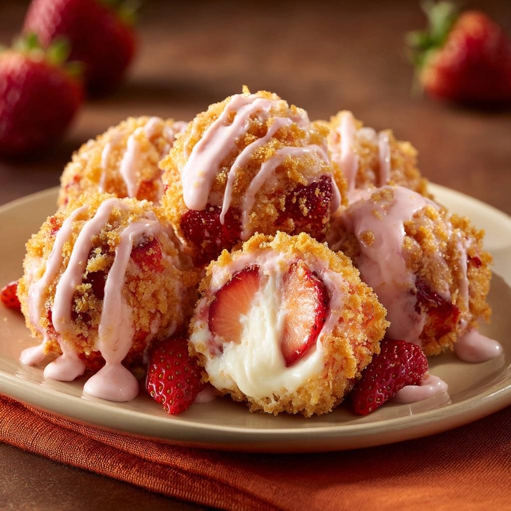 Knusprige Erdbeer-Cheesecake-Bällchen (Nie wieder auslaufende Füllung!)