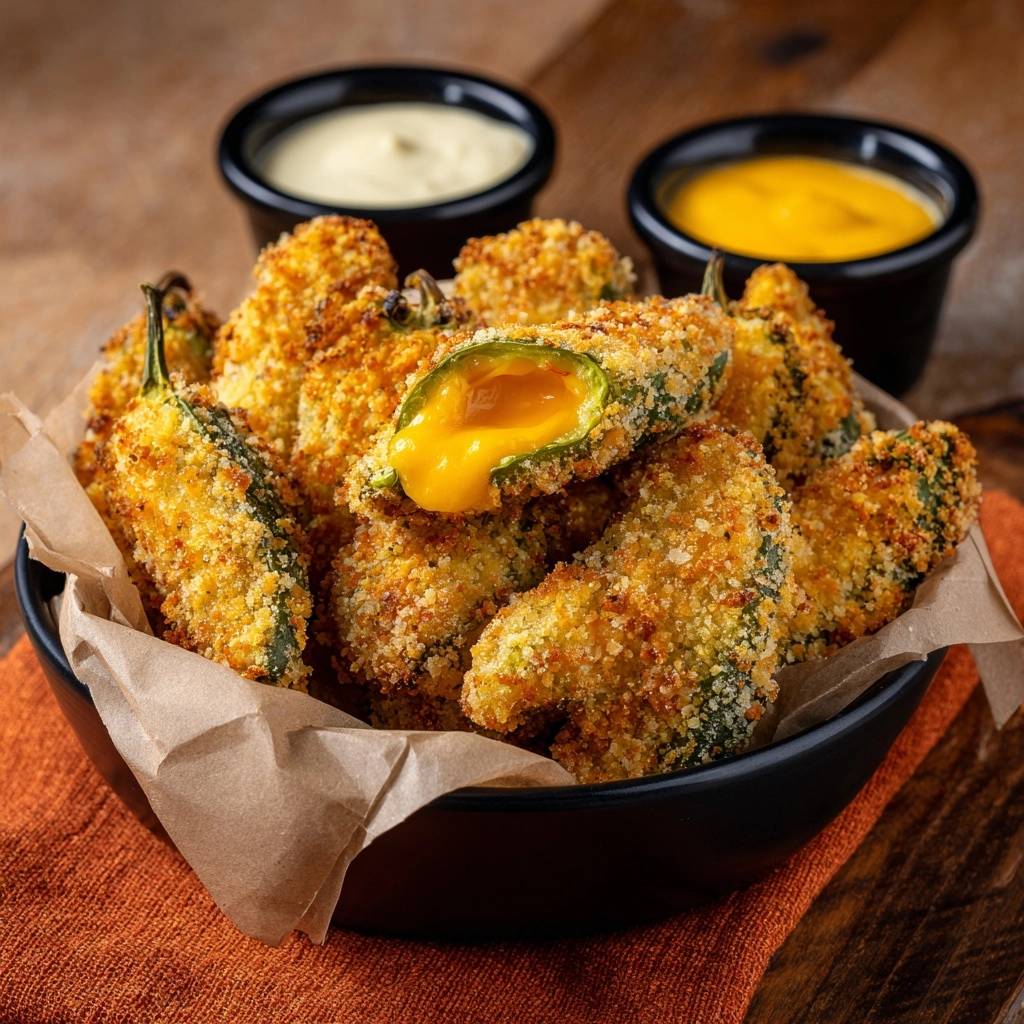 Sie verbinden Schärfe, Käsecreme und Knusprigkeit wie kein anderer Snack. Der Gefriertrick hält den Käse stabil, damit er beim Backen fluffig schmilzt, statt rauszulaufen.