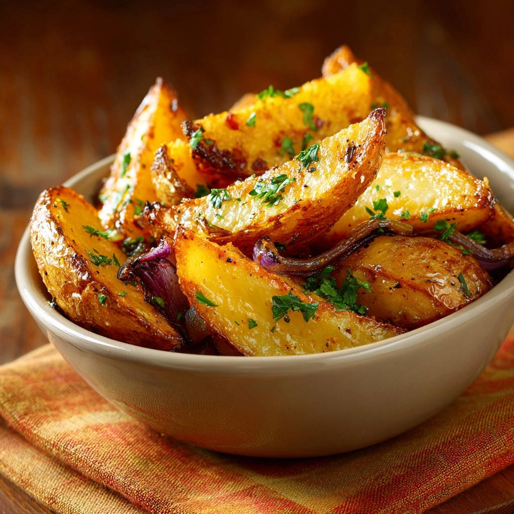 Dies verleiht den Knusprigen Ofenkartoffeln mit Roten Zwiebeln eine zusätzliche Dimension und macht sie unwiderstehlich.