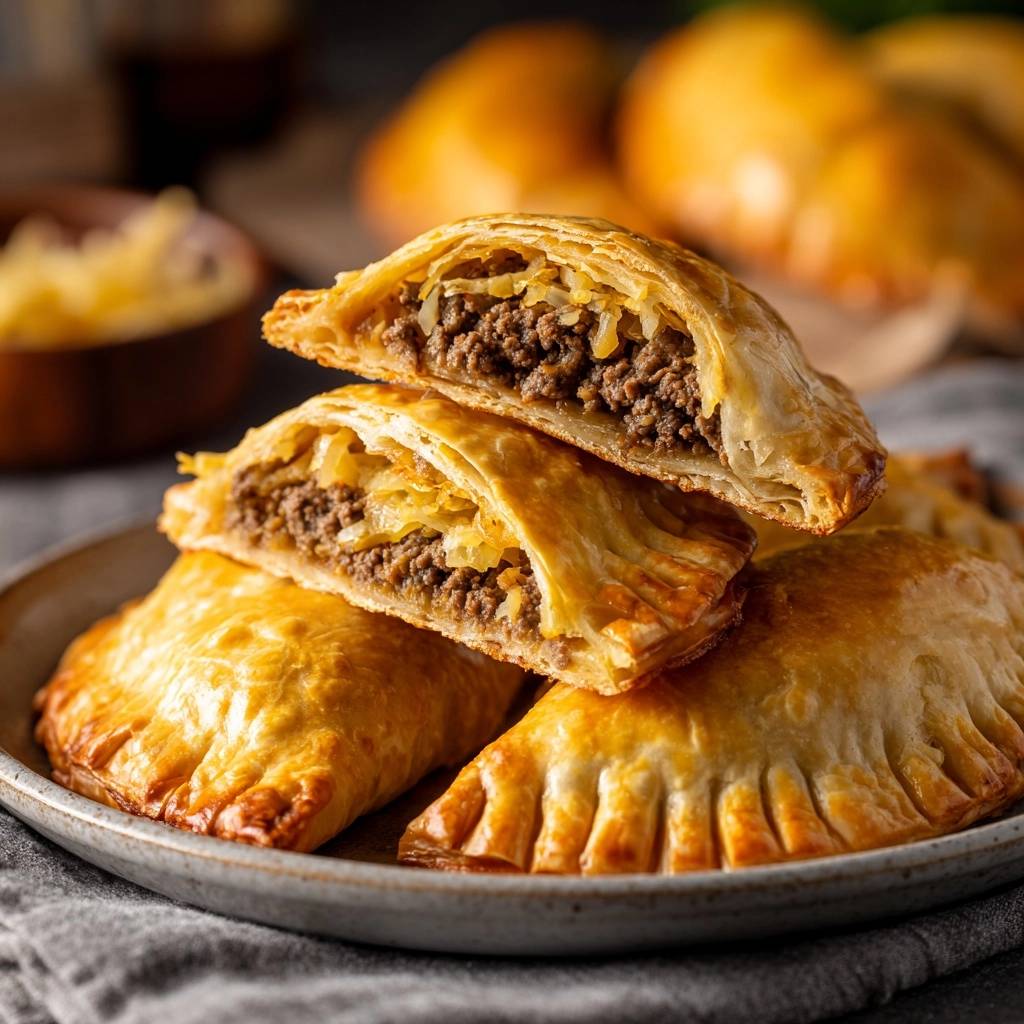Die Kombi aus würzigem Rindhack, säuerlichem Kraut und geschmolzenem Käse ist unschlagbar. Der Blätterteig puffert auf und bleibt stundenlang bissfest. Du wirst staunen, wie leicht das geht, wenn du die Feuchtigkeit im Griff hast.