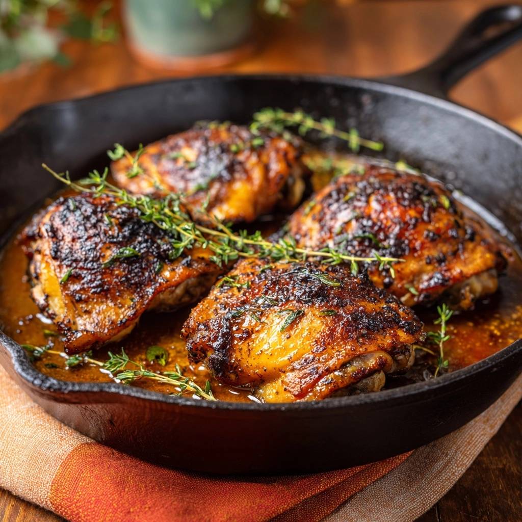 “`Knusprige Thymian-Hähnchenschenkel aus der Gusseisenpfanne