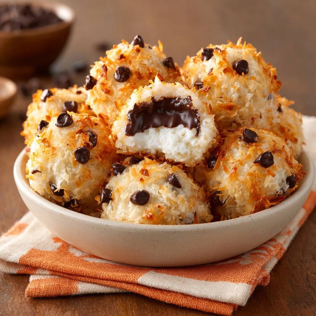 Der Biss in diese Kokos-Schoko-Makronen ist pure Freude. Außen knusprig goldbraun, innen saftig klebrig mit schmelzender Zartbitter-Schoko, die sich auf der Zunge auflöst. Der Duft von gerösteter Kokos und Vanille zieht durch die Küche, während du den ersten Bissen nimmst.