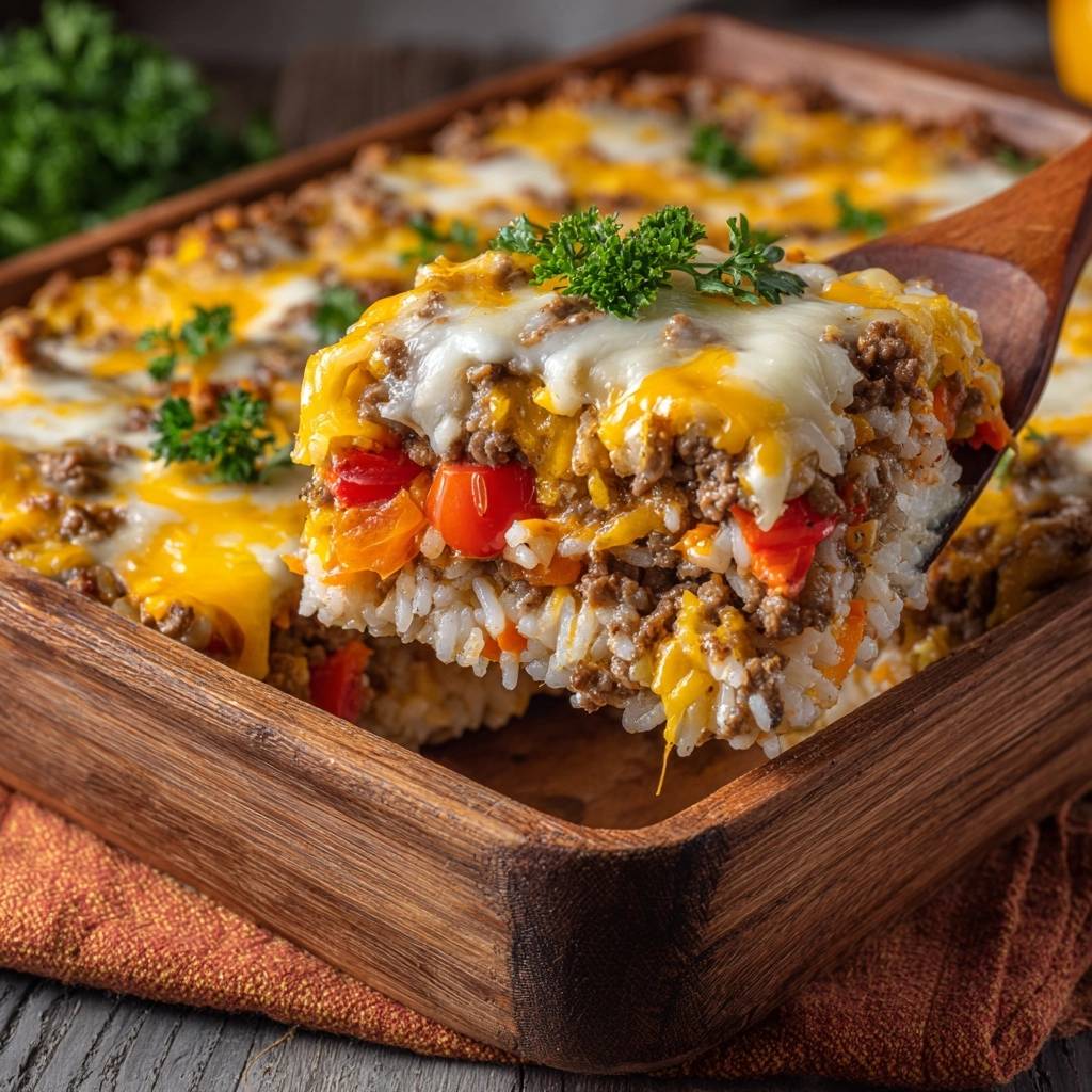 Stell dir vor, du schaufelst die erste Gabel in diesen Auflauf. Der Reis knusprig außen, weich drin, das Hack saftig und würzig, die Paprika süß und fest. Der Käse zieht Fäden, und alles bleibt trocken, ohne diese nervige Brühe.