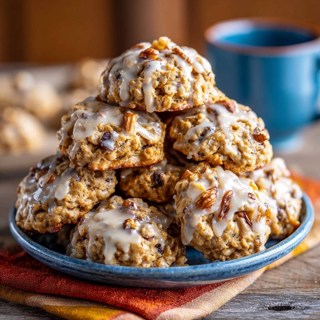 Saftige Haferkekse mit Rosinen, Pekannüssen & cremiger Glasur