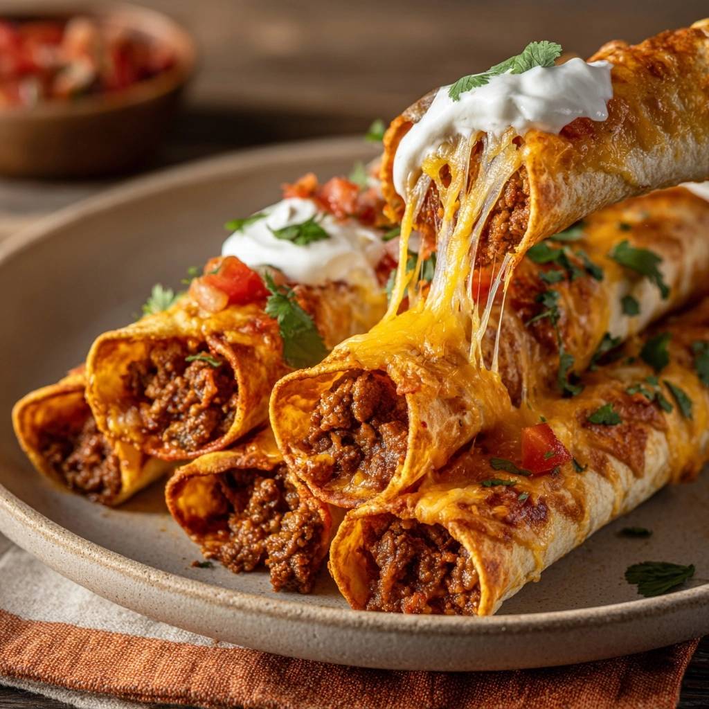 Stell dir vor, du beißt in eine Enchilada, und der saftige Rindfleisch-Füllung quillt heraus, umhüllt von geschmolzenem Käse, der perfekt zieht. Der Duft von gebratenem Hack mit Paprika und Knoblauch erfüllt die Küche, und die Tortilla bleibt weich, rollt sich ohne einen Riss.