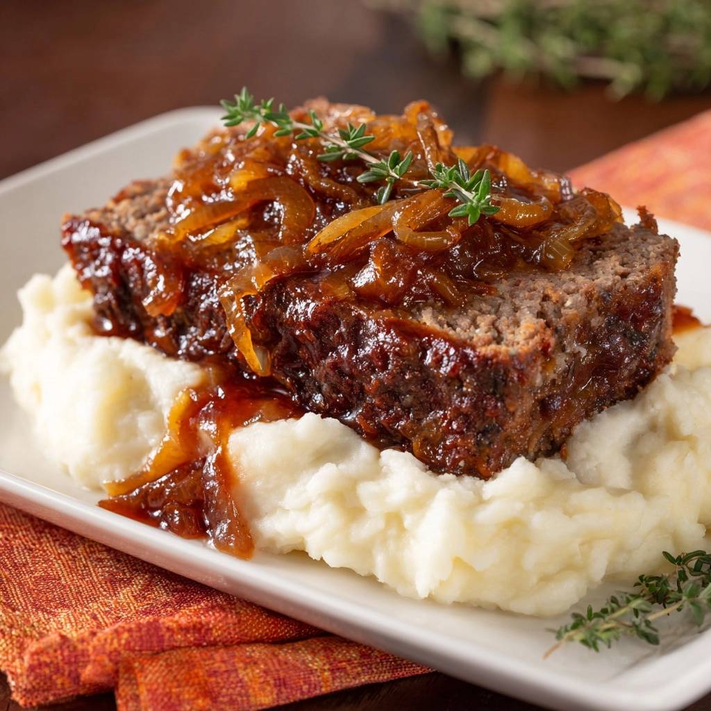 Du merkst den Unterschied sofort. Die karamellisierten Zwiebeln oben drauf werden süß und glasig, der Glaze aus Ketchup und Senf hält alles feucht. Dazu cremiges Kartoffelpüree, und du hast ein Gericht, das die Familie umhaut.