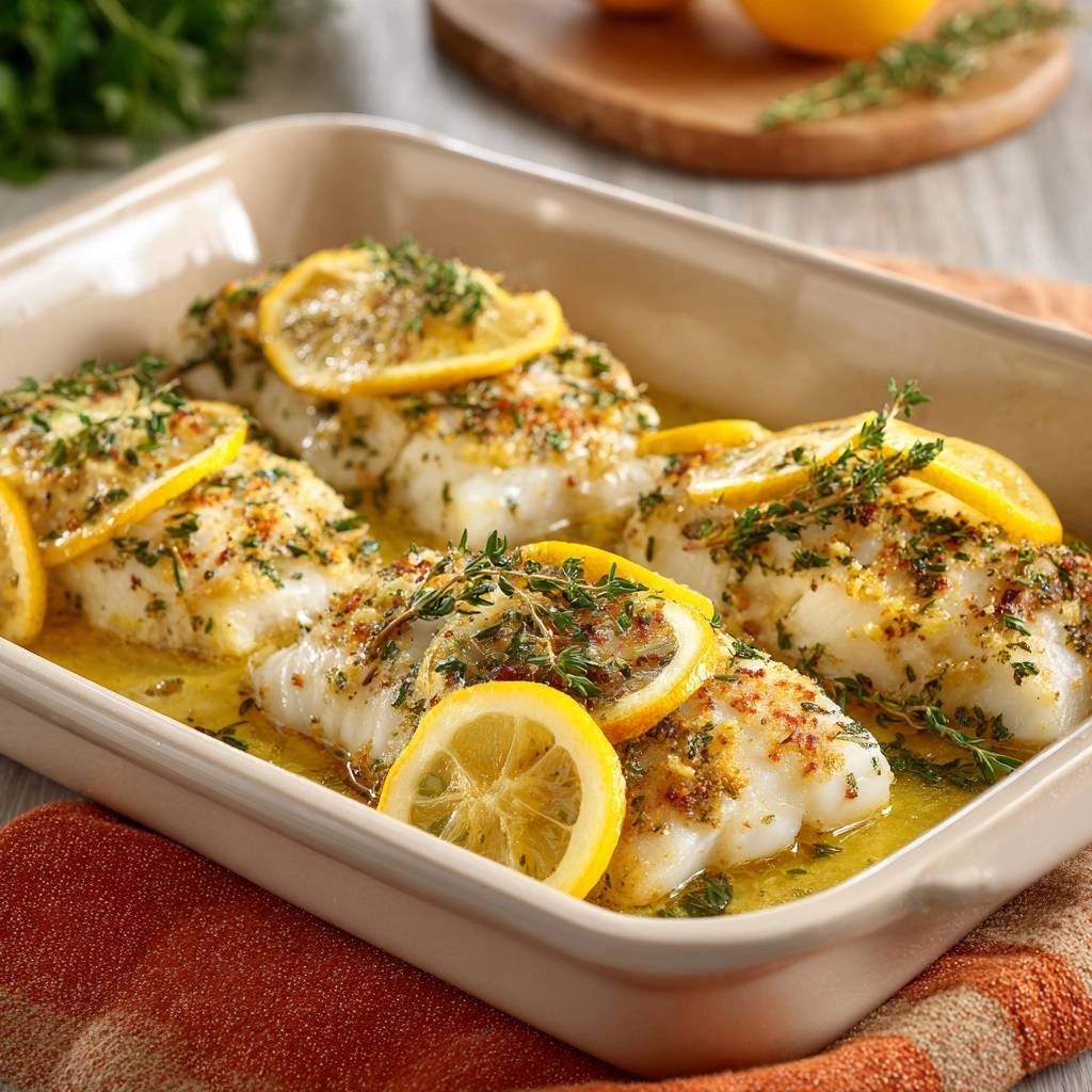 “`Saftiger Zitronen-Thymian-Fisch aus dem Ofen