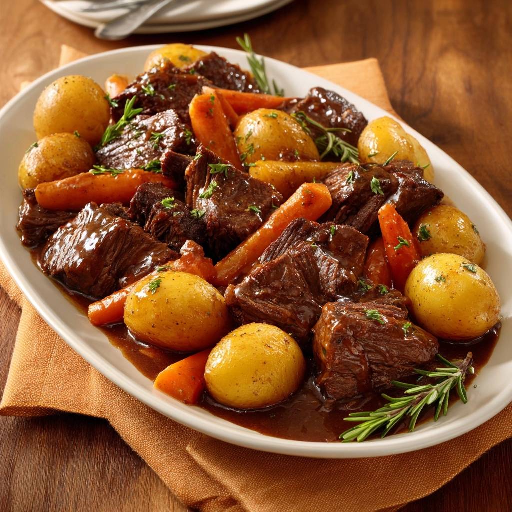 Stell dir vor, du hebst den Deckel vom Topf, und dieser tiefe, herzhafte Duft von gebratenem Rindfleisch und Rosmarin umhüllt dich. Der erste Bissen? Das Fleisch schmilzt butterzart auf der Zunge, umgeben von einer sämigen Sauce, die sich mit bissfesten Babykartoffeln und süßen Karotten verbindet. Es fühlt sich an wie ein warmer Umarmung auf dem Teller.