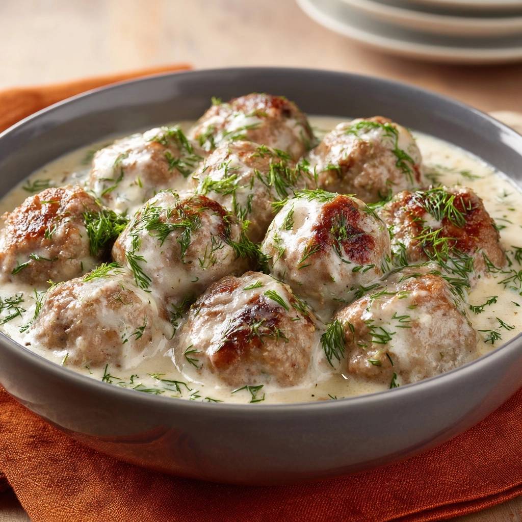 Stell dir vor, du beißt in eine dieser saftigen Schwedischen Fleischbällchen in cremiger Dill-Sahne. Der erste Bissen explodiert mit Zartheit, die cremige Soße umhüllt alles weich und duftend nach frischem Dill. Der Duft steigt auf, während sie in der Pfanne brutzeln, und plötzlich fühlst du dich wie in einem gemütlichen schwedischen Zuhause.