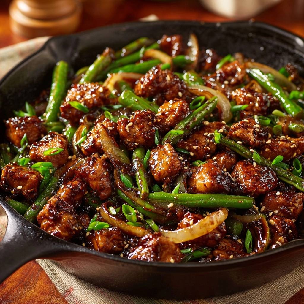 Stell dir vor, du nimmst die erste Gabel dieses Sesam-Tofu mit knackigen grünen Bohnen in den Mund. Der Tofu knuspert so herrlich, die Sauce klebt glasiert daran, und die Bohnen beißen knackig durch. Ich hab jahrelang Tofu in allen Varianten gekocht und immer diesen matschigen Moment gehasst, wo alles zerfällt und fade bleibt.