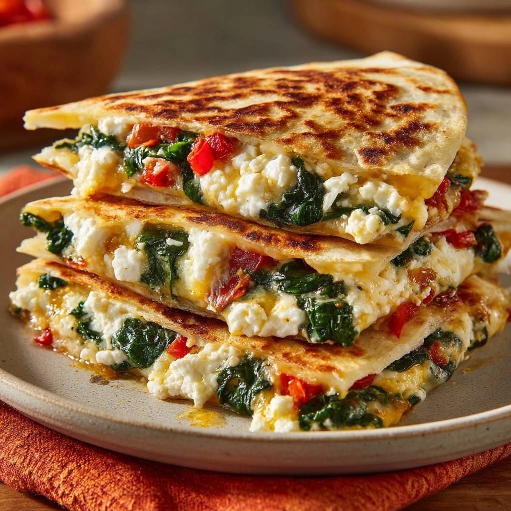 Stell dir vor, du beißt herzhaft in eine Quesadilla. Außen knusprig goldbraun, innen explodiert der Geschmack: cremiger Feta, knackige Paprika, säuerliche Tomatensüße und Spinat, der perfekt saftig bleibt. Kein Matsch, kein Wasser, das alles ruinierst. Der Duft von gebratenem Käse zieht durch die Küche, und du fragst dich, warum du das nicht früher gemacht hast.