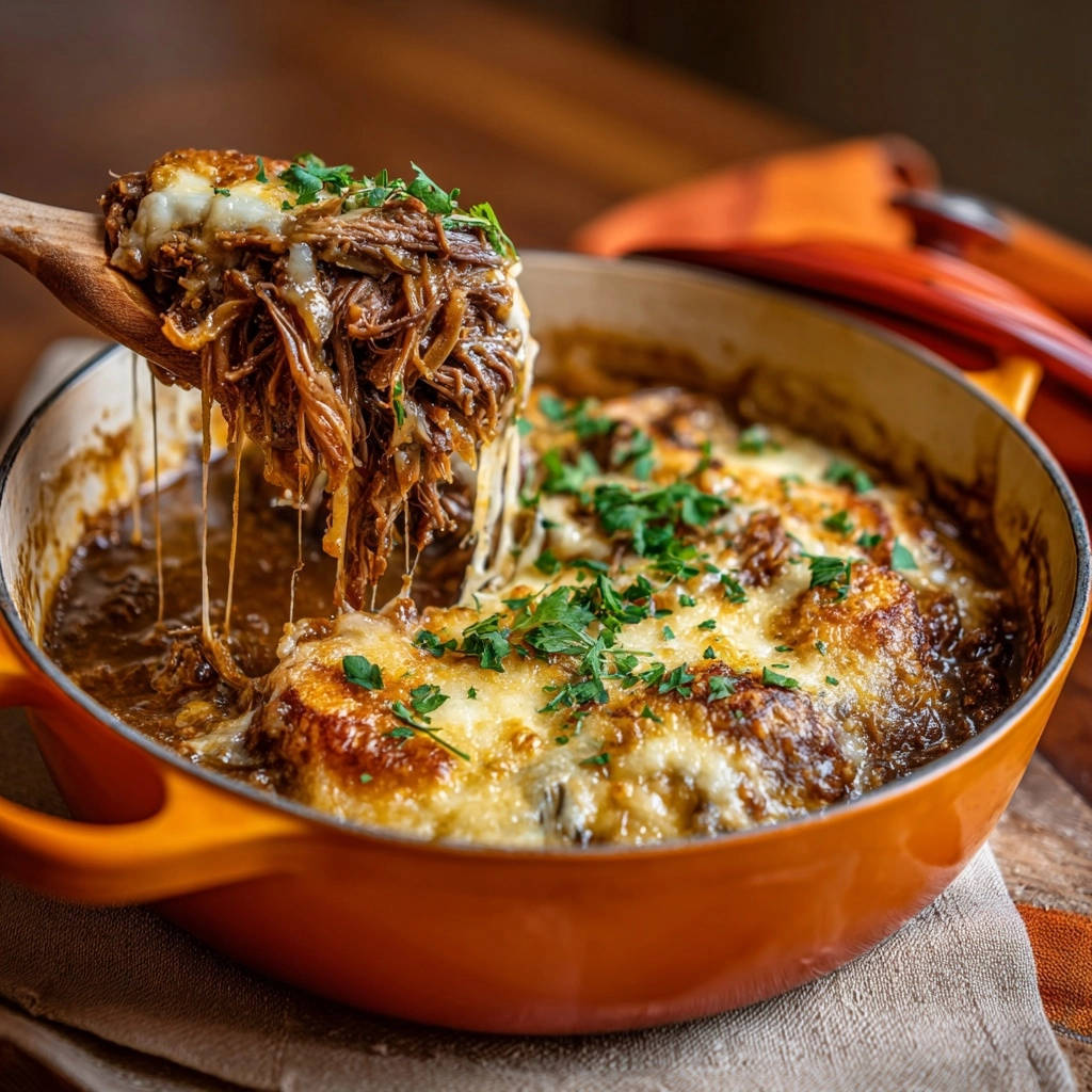 Dieses Rezept ist eine Hommage an die Langsamkeit und die tiefen Aromen, die sich nur durch geduldiges Schmoren entwickeln. Das Besondere liegt in der Kombination aus einer langen, sanften Garzeit, die das Fleisch unglaublich zart macht, und einer abschließenden Gratinierung, die dem Gericht eine goldbraune, knusprige Käsehaube verleiht.