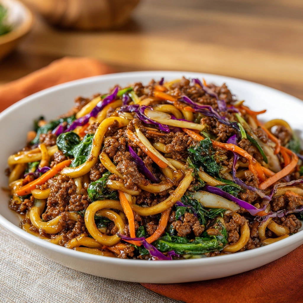 Würzige Udon-Pfanne mit Rinderhack: Nie wieder klumpiges Fleisch!