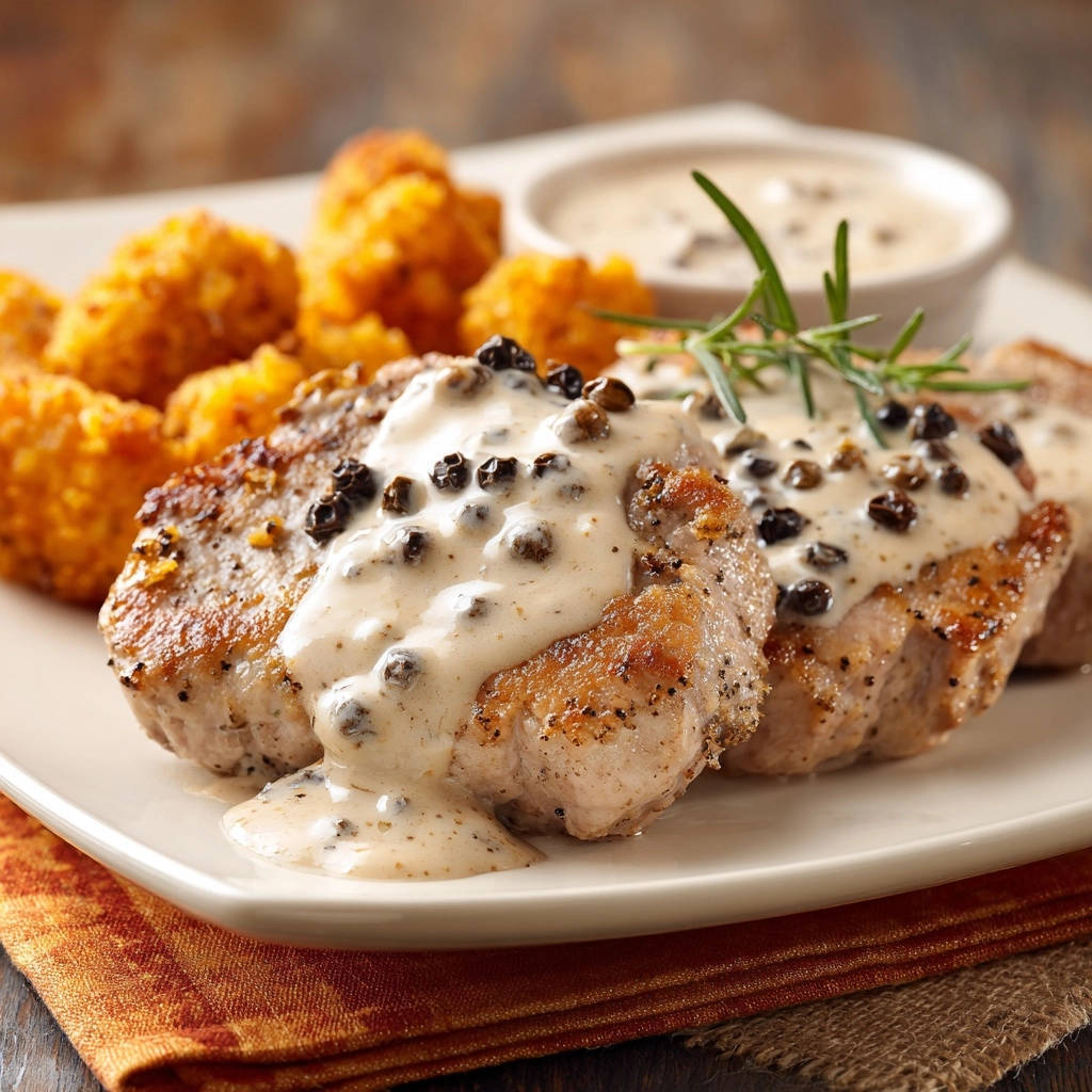 Zarte Putenmedaillons in cremiger Pfefferrahmsoße