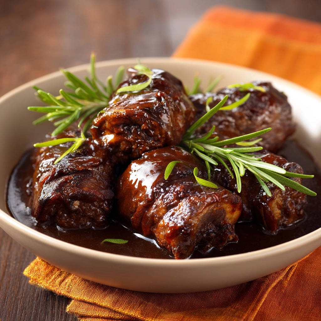 Zarte Rinderrouladen in Rosmarin-Schmorsoße