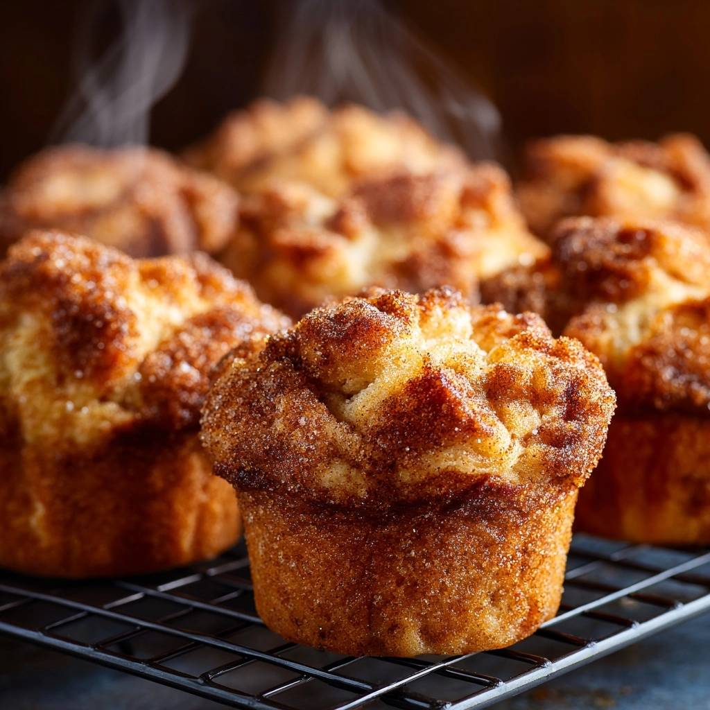 - Für die Kruste: Muffins in geschmolzener Butter wälzen, dann in Zimt-Zucker-Mischung (Zucker + Zimt) rollen. Fertig – fluffig, knusprig, unwiderstehlich!